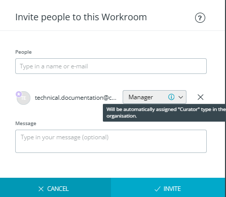 When you change or set a person's role in a Workroom, their user type may be updated to the minimum required user type automatically so they have the access they need. If this is the case, a tooltip will inform you of the user type change in the "Update role" or "Invite people" dialog next to the role.